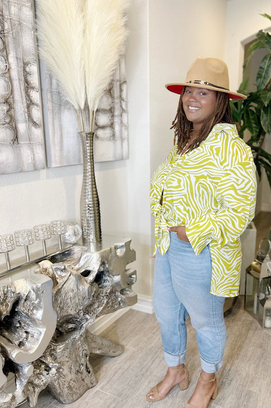 Green & White Zebra Top