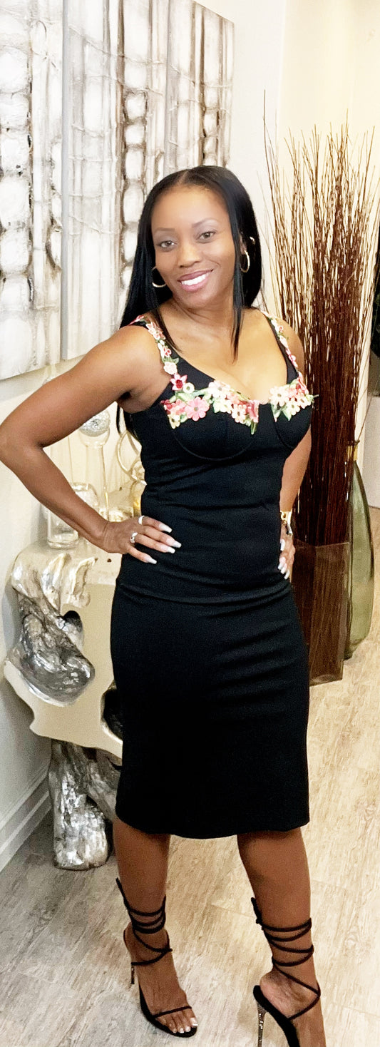 Flower Trim Bodycon Dress