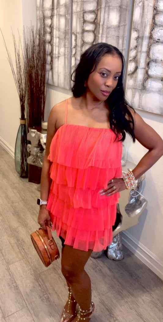 Coral Layered Mini Dress
