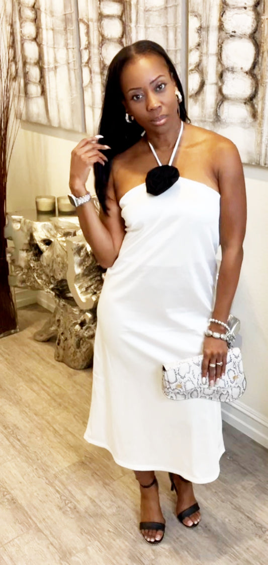 Sleek & Sassy White Halter Dress