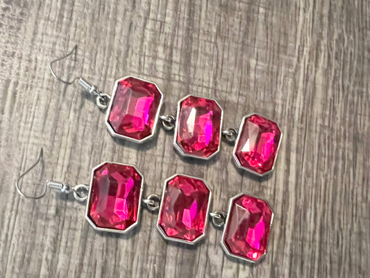 HOT PINK GEM TRIO EARRINGS