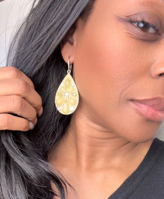 Yellow and Green Flower and Gem Earrings