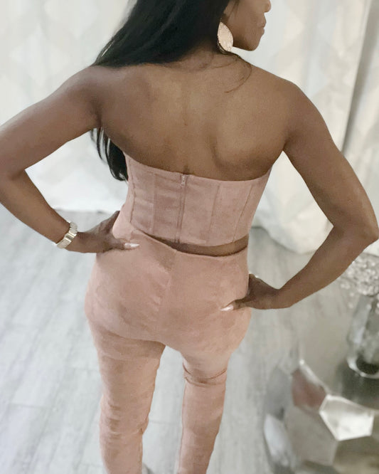 Strawberry Milkshake Vegan Suede Corset Pants Set