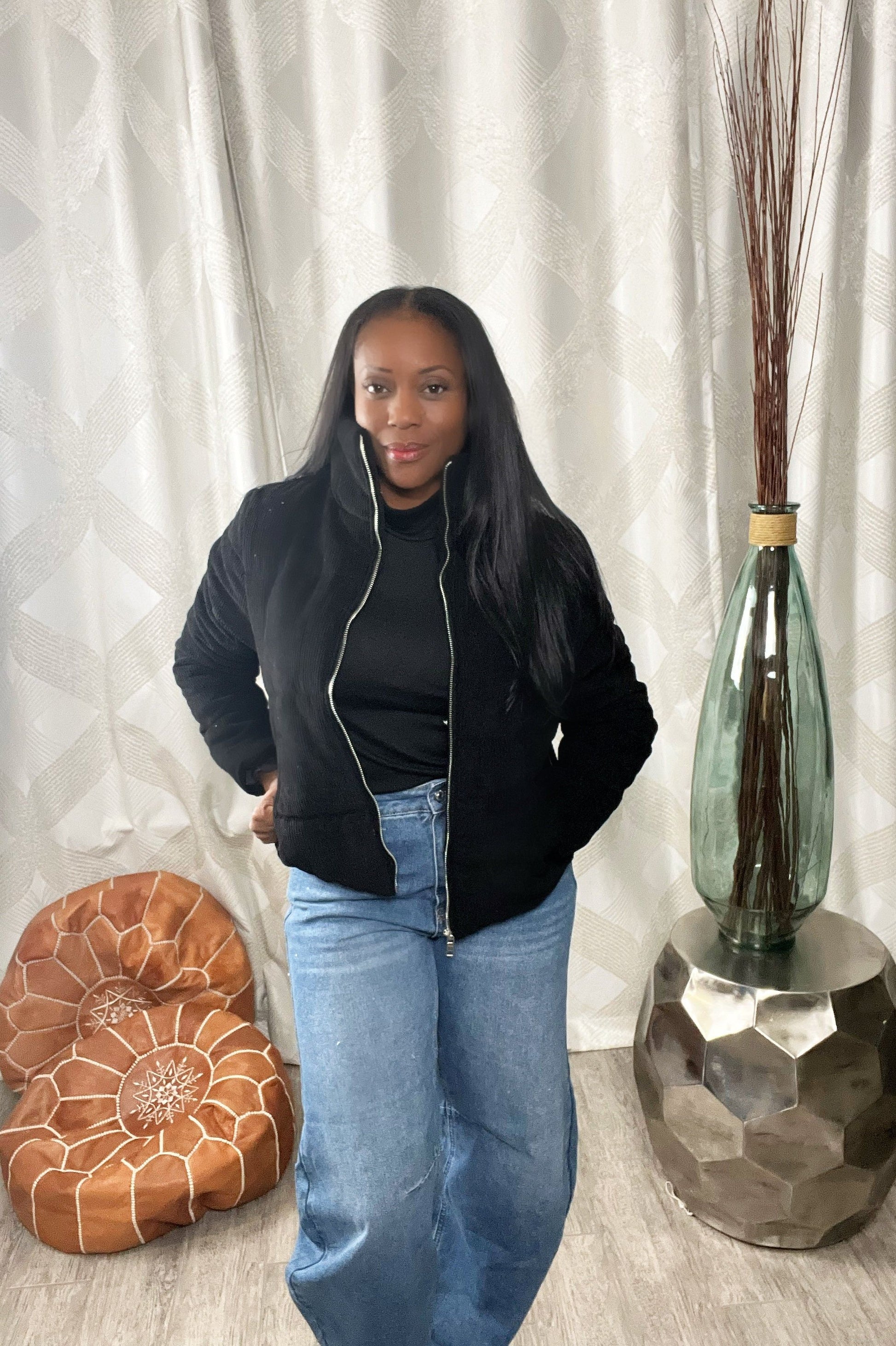 Elevate your cool-weather style with our Corduroy Zip-Up Jacket. Crafted from soft and textured corduroy fabric, this jacket offers both warmth and fashion-forward flair. It features a practical pocket for your essentials and a high collar to keep you cozy when the temperature drops. The zip-up front adds a touch of versatility to your look, making it easy to layer over your favorite outfits.